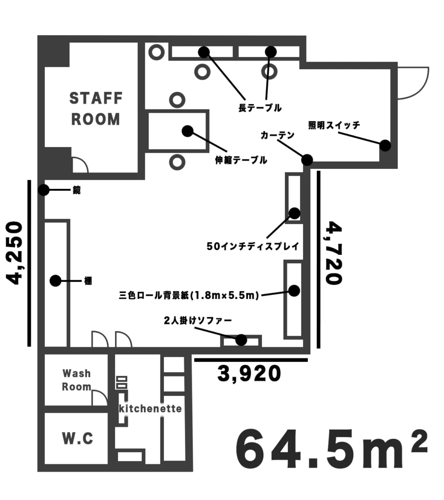- スタジオ内に事務所を設置しておりますので、スタッフが出入りすることがあります。あらかじめご了承ください。